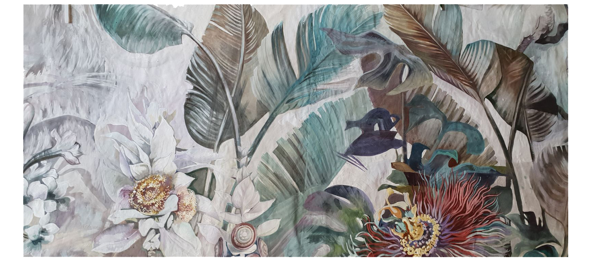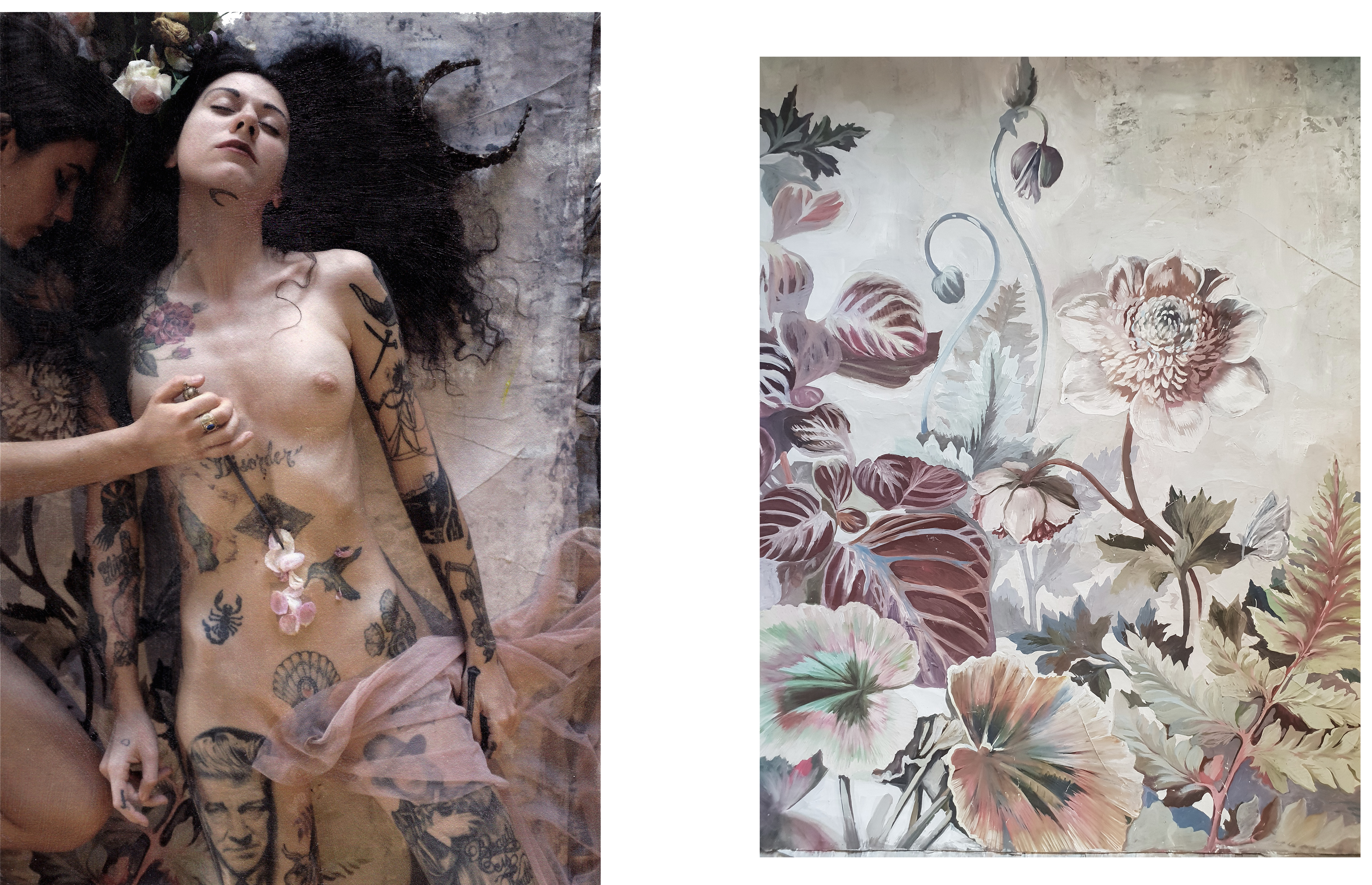 Decorative wallpaper Collaboration with the artist ErreSullaLuna + ChuliPaquin Project inspired by Botticelli’s painting “La nascita di Venere” and the origins of Flora in the “Primavera”